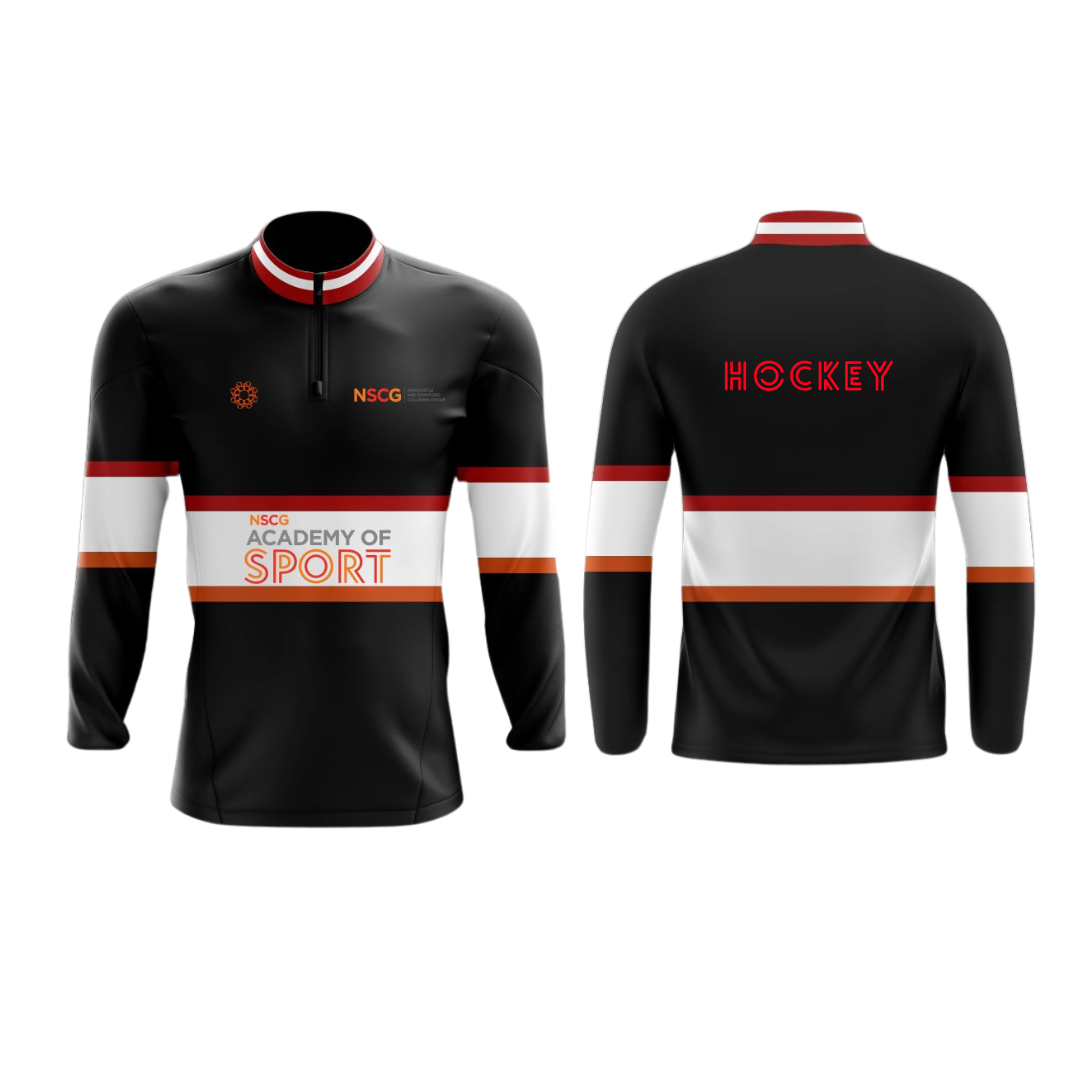This Retro Style Polar fleece will keep you warm, whilst rocking the retro oversized look. Academy of Sport branding on the front and 'HOCKEY' embroidered on the back. Black with orange, red and white accents. This unisex, oversized fit is destined to become your new favourite jumper!