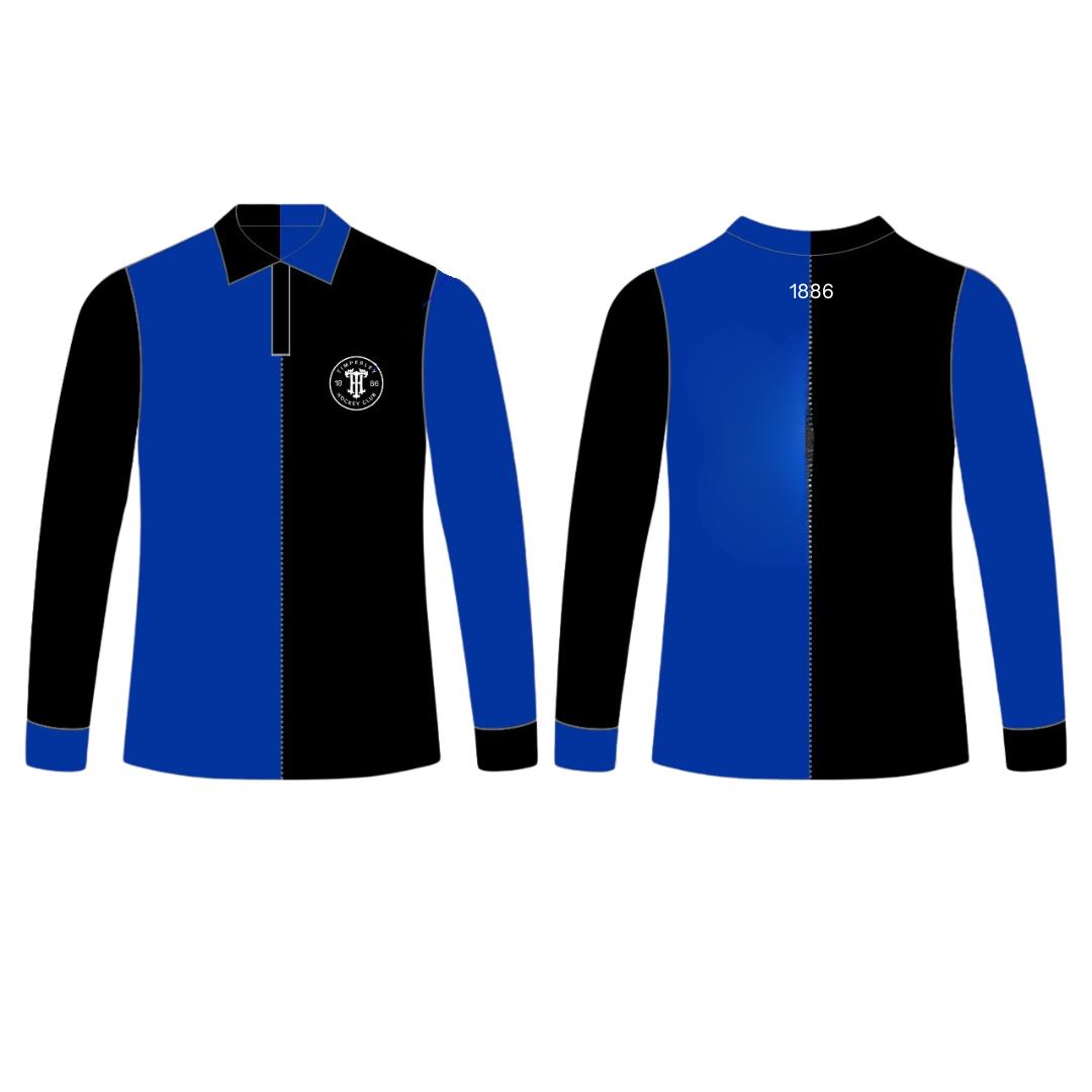 Crafted from fully sublimated Polycotton, this Heritage style shirt is steeped in the history of THC. With a modern twist, this rugby style shirt features the original 'split half colours' of Timperley Men's blue and black historic playing shirts. A woven heritage badge proudly sits on the chest, with a plain back. A regular rugby shirt fit, perfect for off pitch wear and relaxing after the game.
